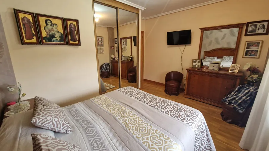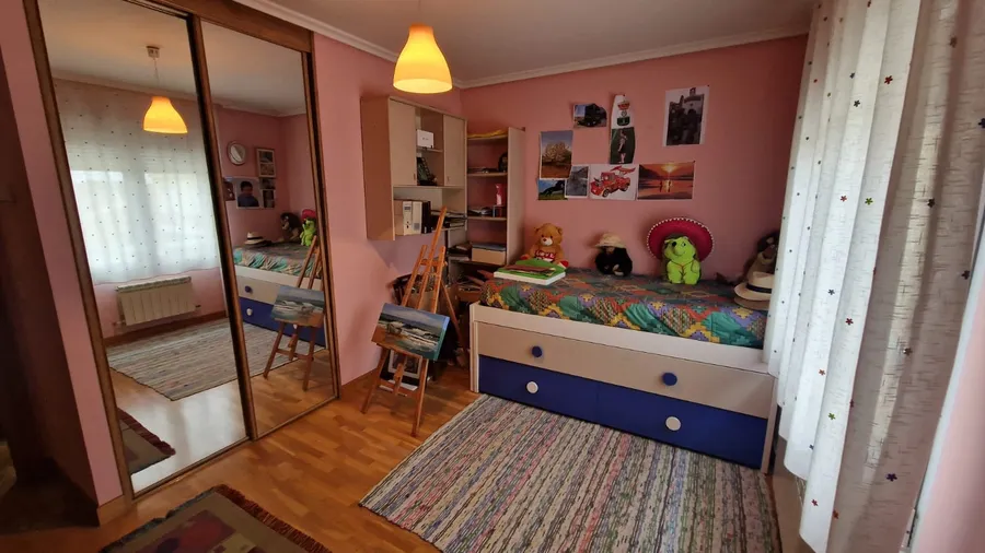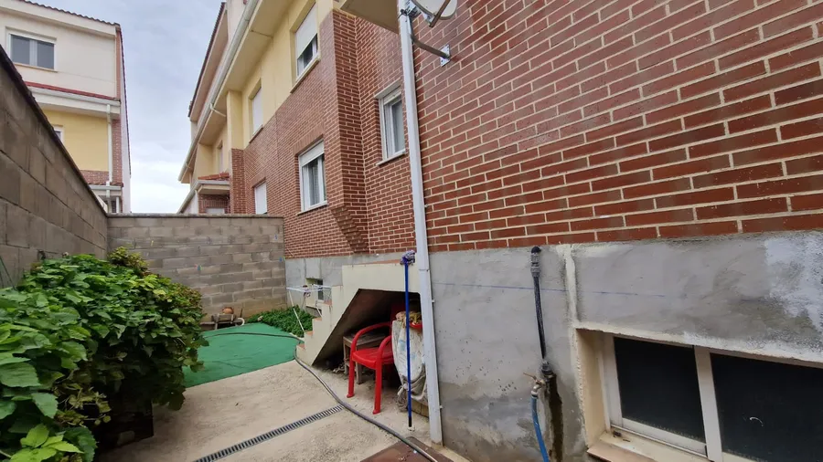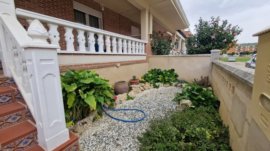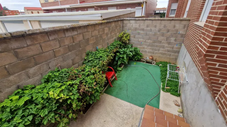 Este chalet en venta en Palencia está distribuido en tres plantas más sótano. En la planta baja encontramos una amplia zona social con un salón independiente, cocina equipada, baño completo con plato de ducha y salida directa a un fantástico patio de 30 metros, ideal para el disfrute al aire libre.